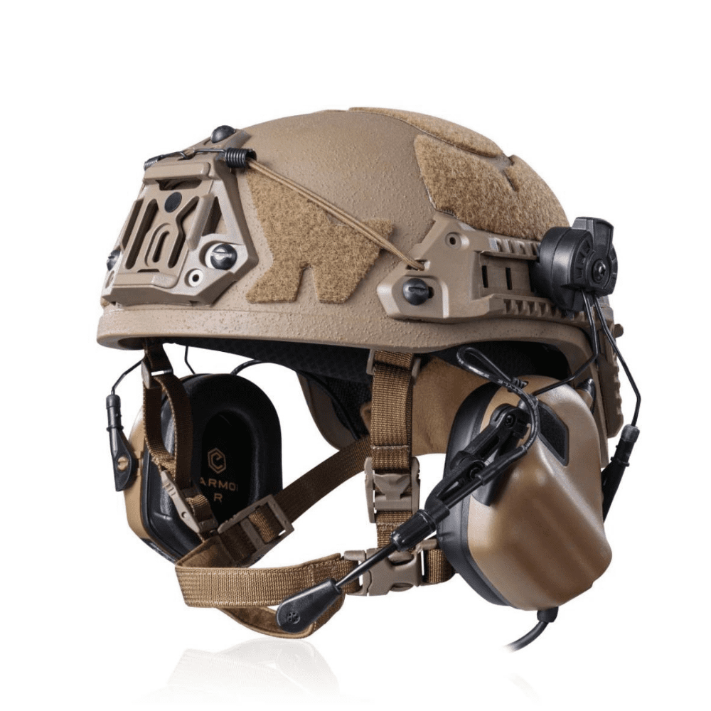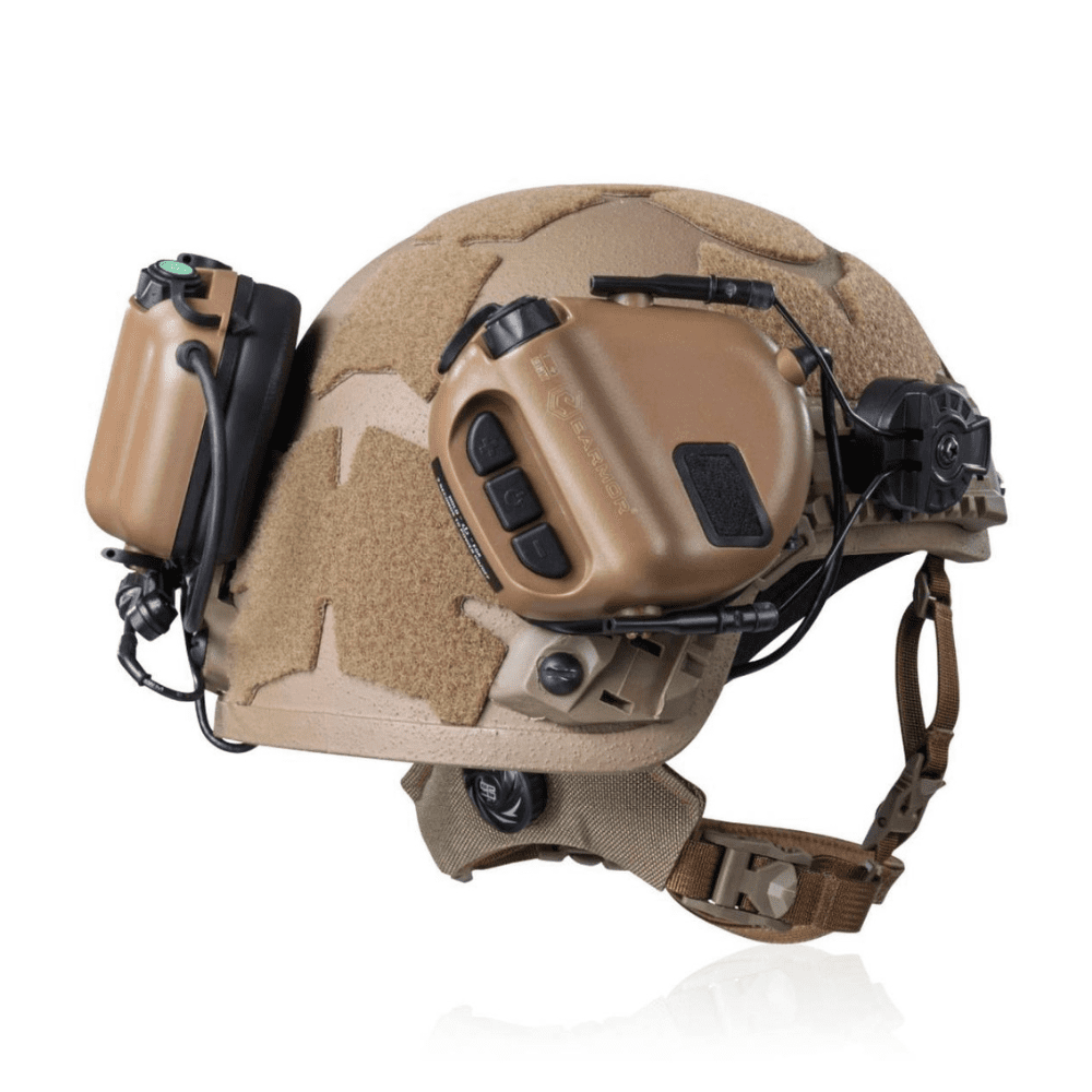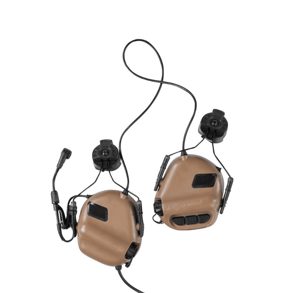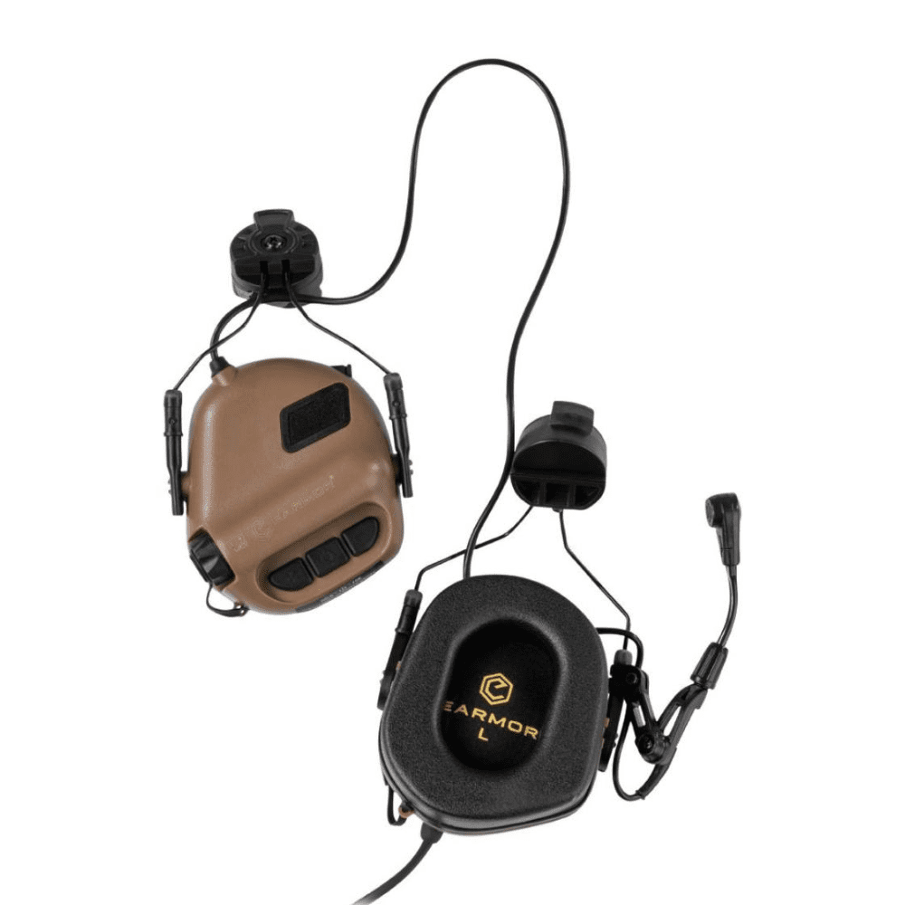 Професійні активні навушники з подвійним мікрофоном (зовнішнім та вбудованим) та кріплення для шоломів типу FAST, TOR-D, рейковими кріпленнями типу ARC, виготовлені спеціально для використання з військовою метою на базі навушників Earmor M32. Створені для захисту слуху він вибухів, пострілів та різких звуків, вони захищають від небезпечного шуму, водночас дозволяють нормально чути і навіть посилювати стандартні звуки: мова, команди, інструкції, звуки з навколишнього середовища.