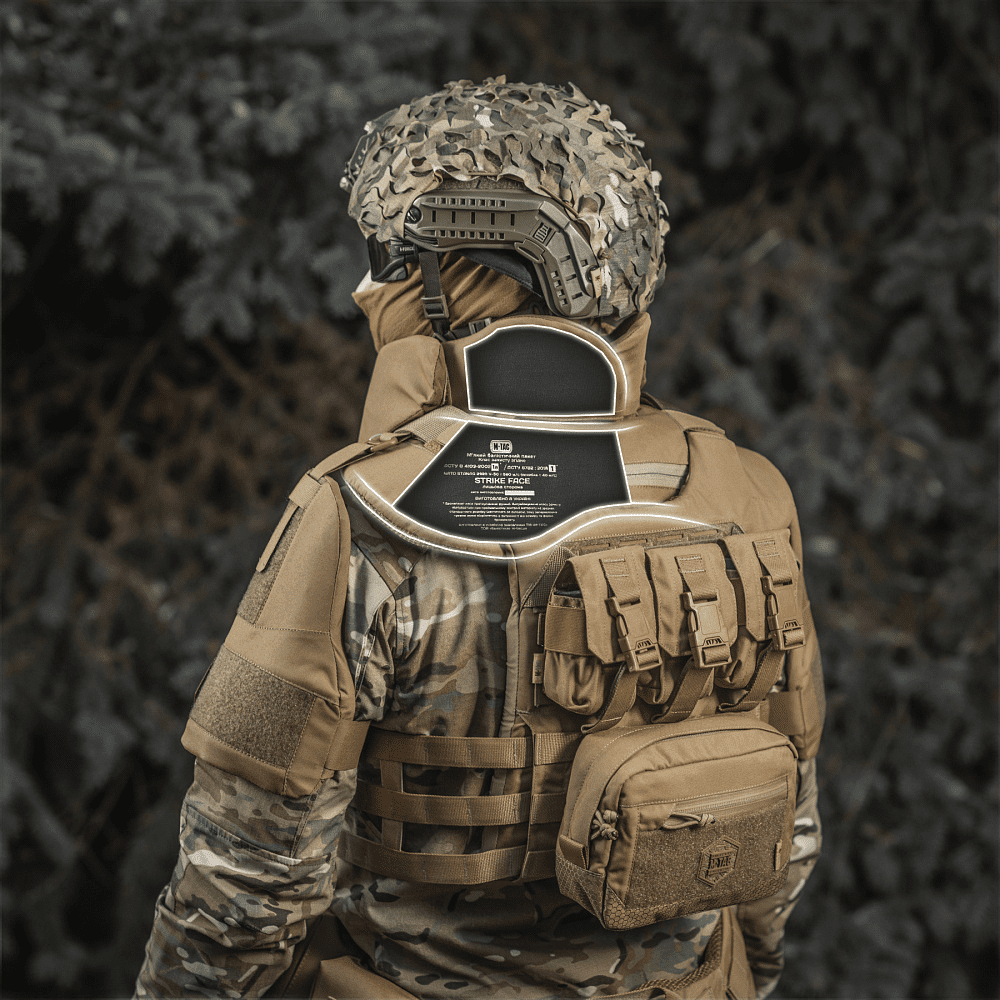 Бренд М-Тас розробив нову концепцію системи індивідуального захисту бійця – горжет з балістичними пакетами 1А для М-Тас плитоноски Cuirass QRS. Виріб являє собою компактний знімний модуль, що забезпечує круговий протиуламковий захист шиї та верхньої частини спини військового.