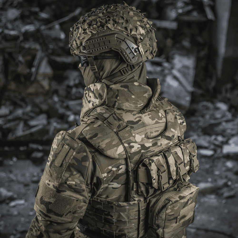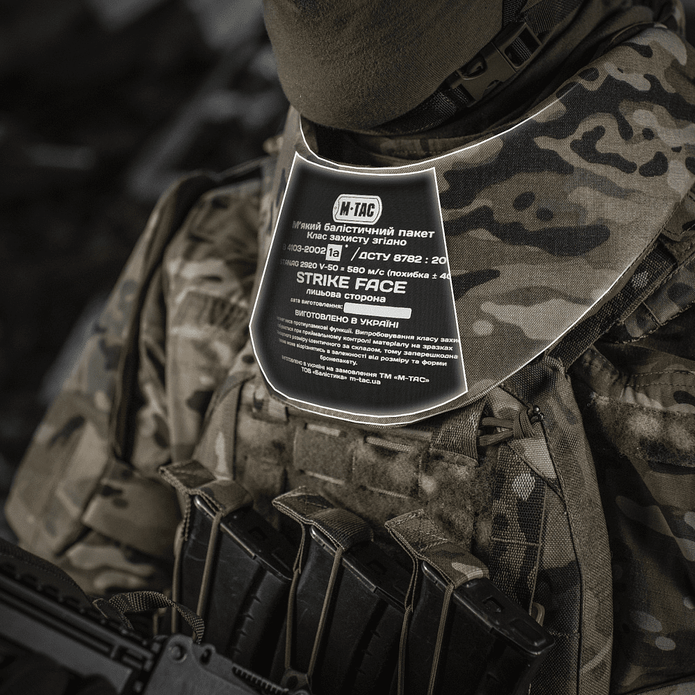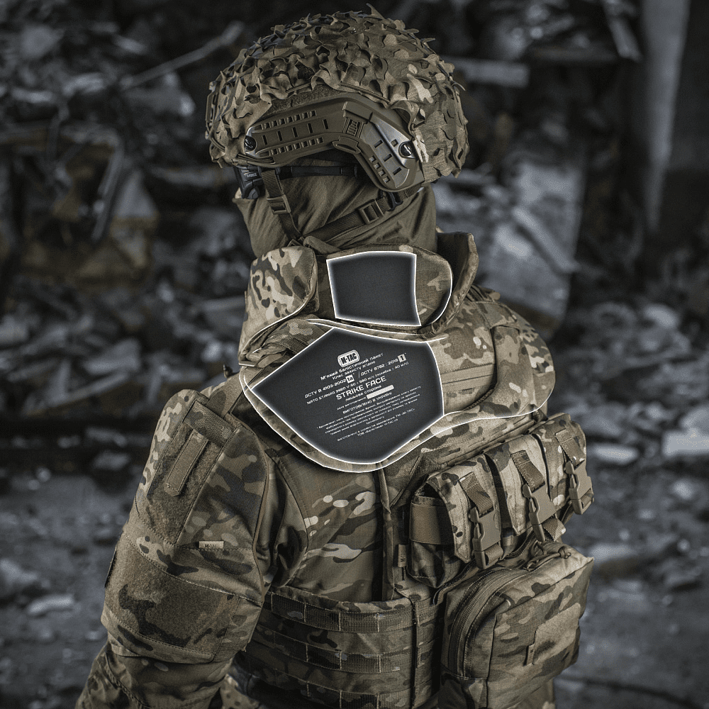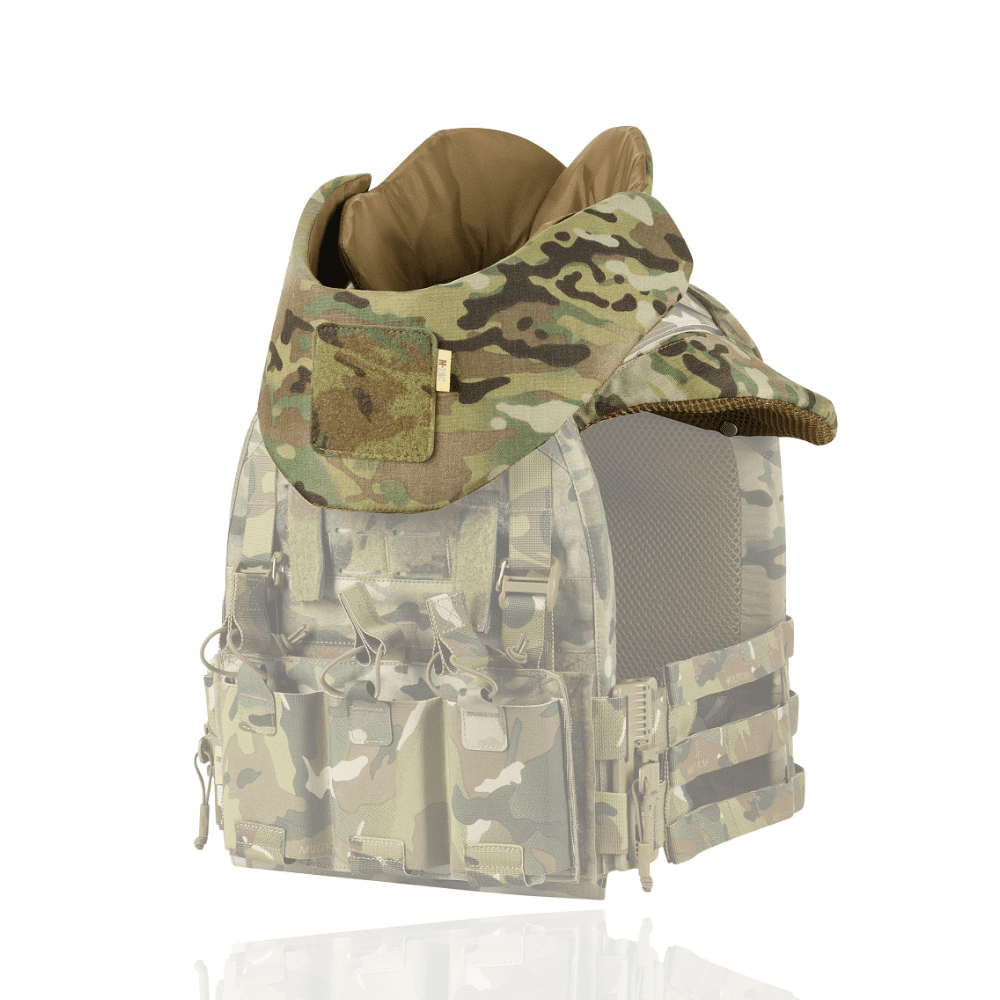 Бренд М-Тас розробив нову концепцію системи індивідуального захисту бійця – горжет з балістичними пакетами 1А для М-Тас плитоноски Cuirass QRS. Виріб являє собою компактний знімний модуль, що забезпечує круговий протиуламковий захист шиї та верхньої частини спини військового.