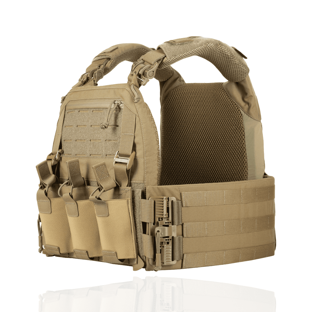 Даний елемент спорядження комплектується балістичним пакетом, призначеним для захисту від рикошетів та уламків.  Виготовлений з надвисокомолекулярного поліетилену (НВМПЕ) та відповідає STANAG 2920 з показником протиуламкової стійкості V-50 близько 580м/с.