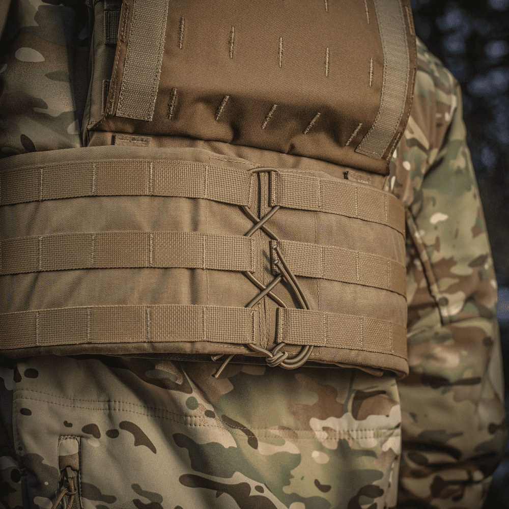 M-Tac камербанд із балістичними пакетами 1А використовується для бокового кріплення до плитоноски Cuirass QRS. Конструкція дозволяє дуже щільно притиснути до тіла жилет, який не буде коливатись під час інтенсивної ходьби або бігу.