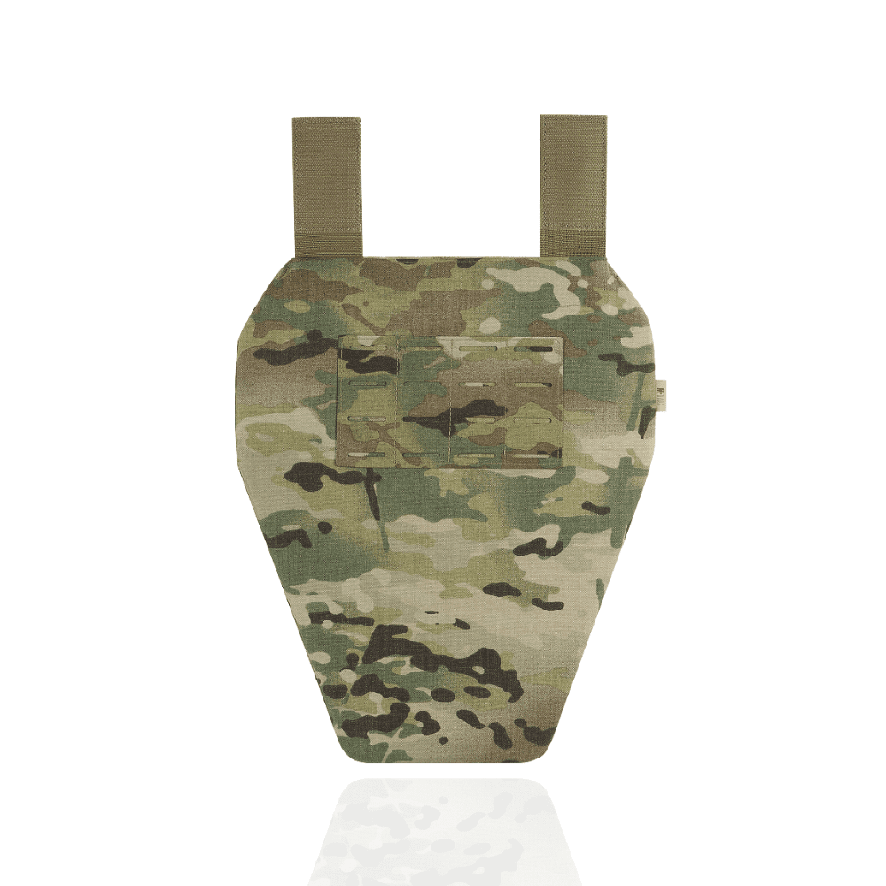 Кріпиться під клапан плитоноски або бронежилета за допомогою двох велкро хлястиків, які дають можливість налаштувати фартух по висоті.
