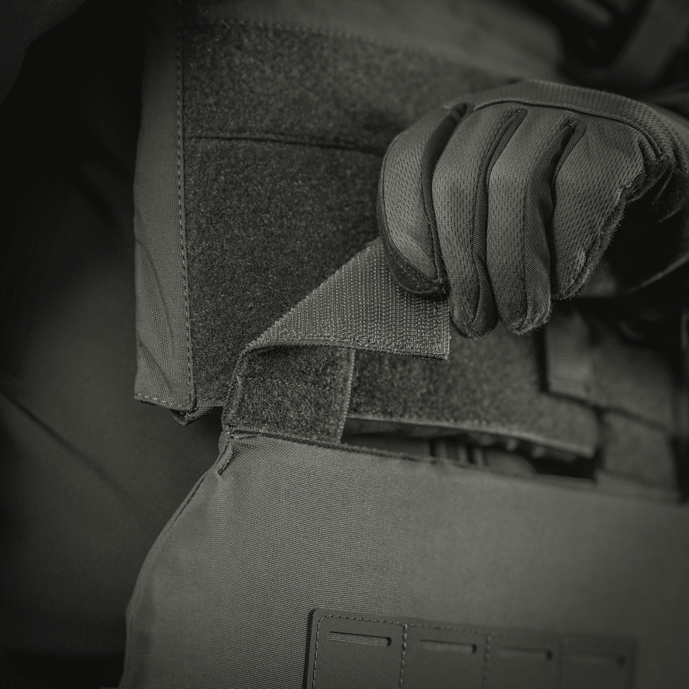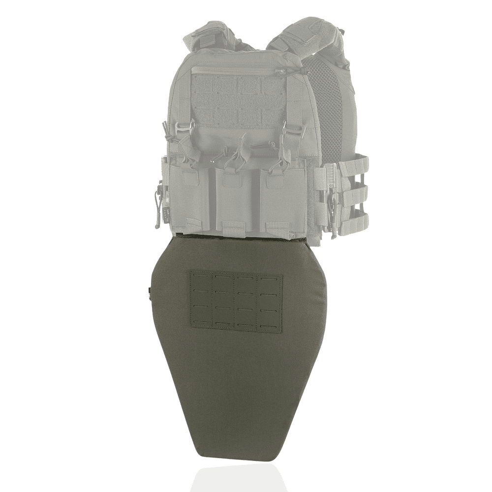 Кріпиться під клапан плитоноски або бронежилета за допомогою двох велкро хлястиків, які дають можливість налаштувати фартух по висоті.
