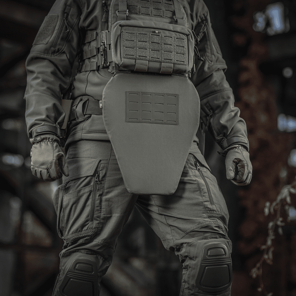 Дизайнери бренду М-ТАС розробили та створили протиуламковий фартух, який слугує додатковим елементом захисту пахово-крижової частини тіла від рикошетів і уламків.
