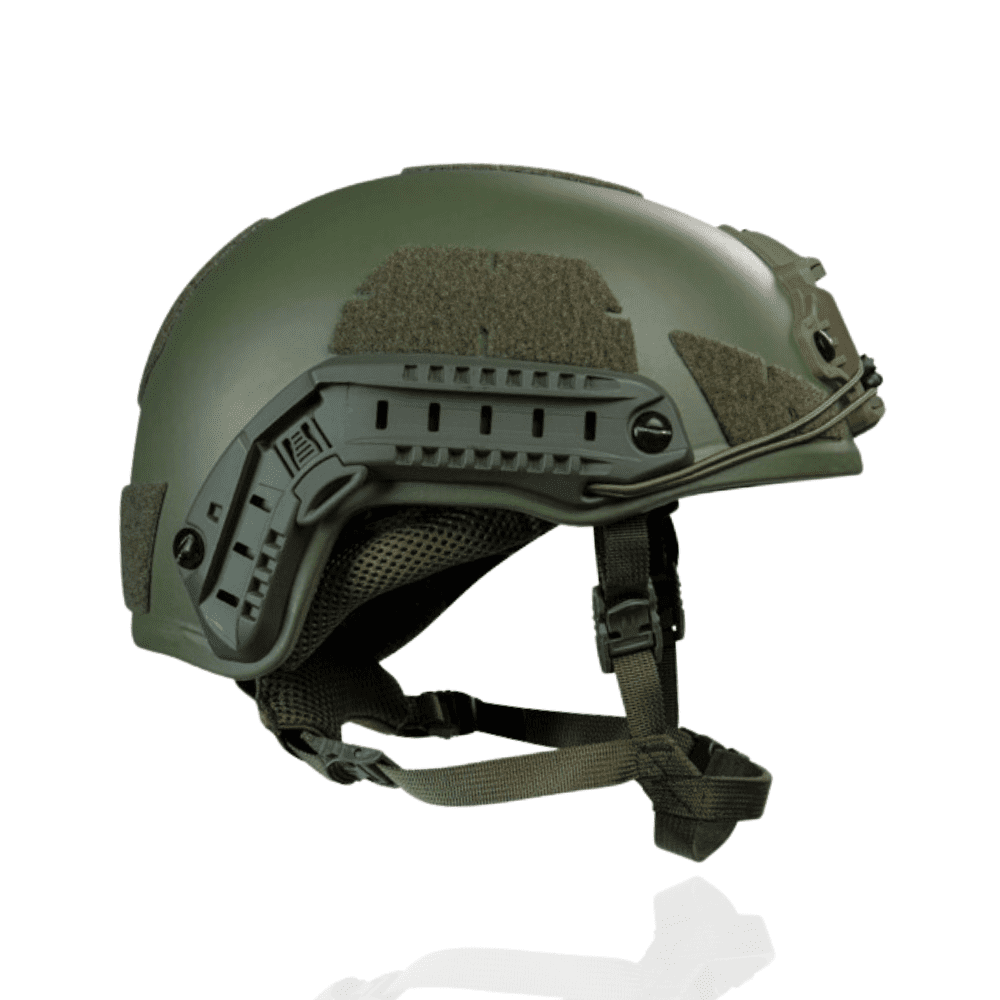 Матеріал шолома – арамідна тканина (в народі її називають кевлар) – саме він забезпечує довговічність шолома та клас захисту NIJ ІІІ А з відповідним стандартом протиуламкового захисту STANAG 2920 на рівні >670 м/с ( 99/100 шоломів на ринку України до 400 м/с )