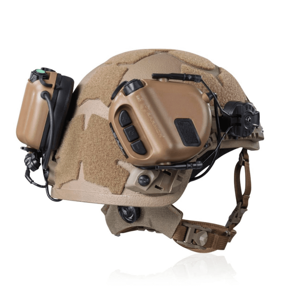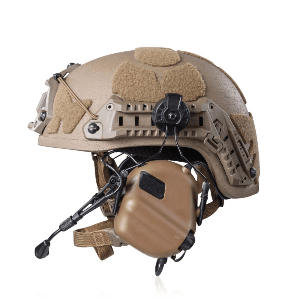 Комплект шолом Fast NIJ IIIA з активними навушниками Earmor M32 з кріпленням Чебурашки. Колір Койот