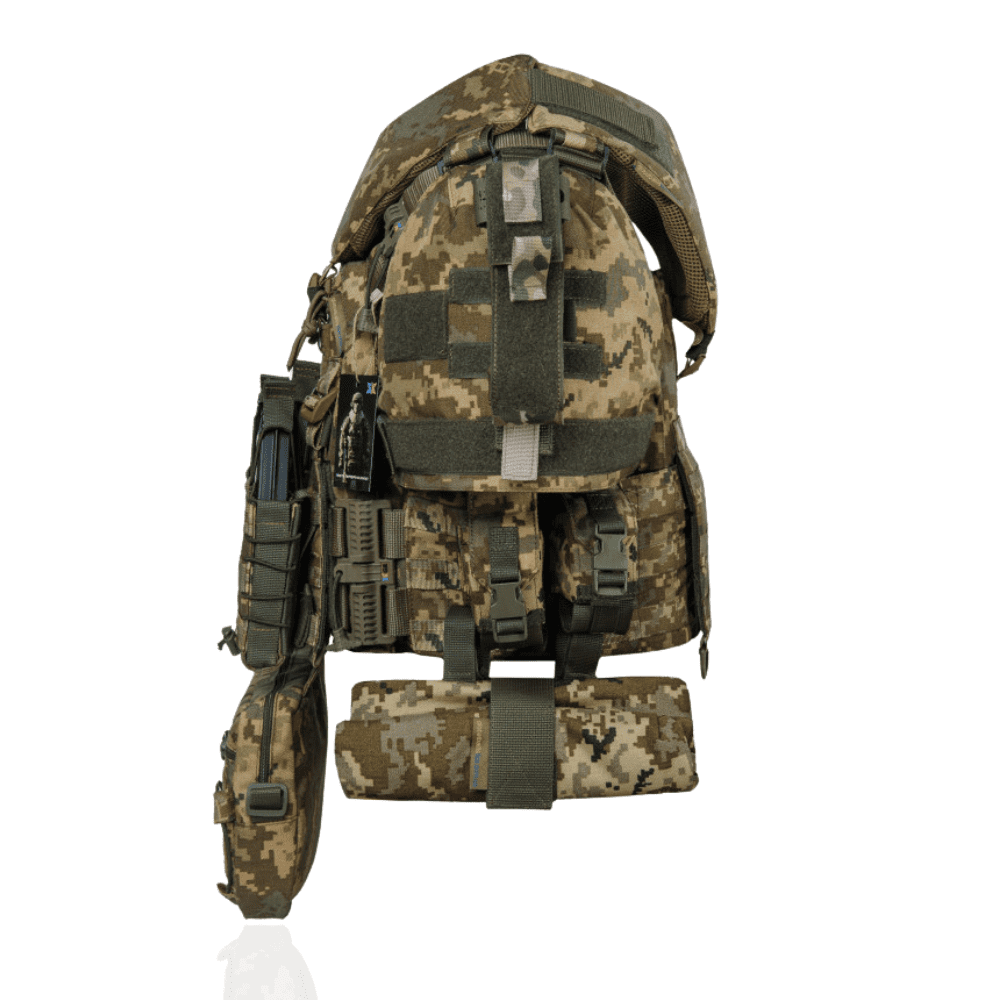 Збільшена плитоноска та два балістичних пакети 620 на 470 мм., що покривають усю площу плитоноски