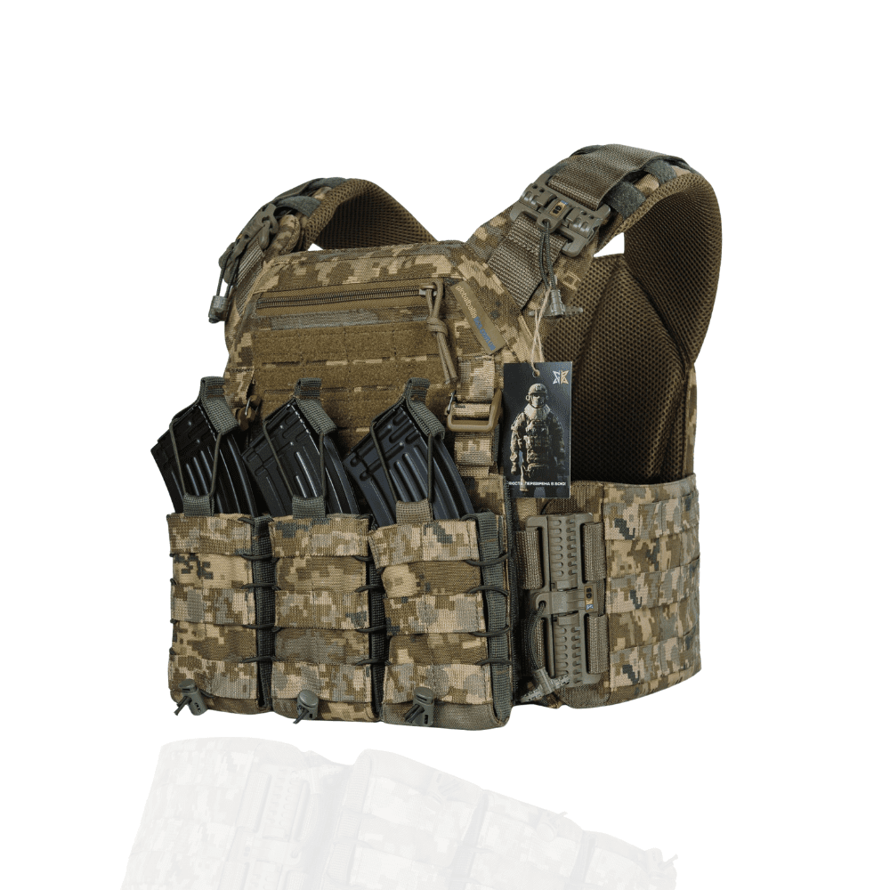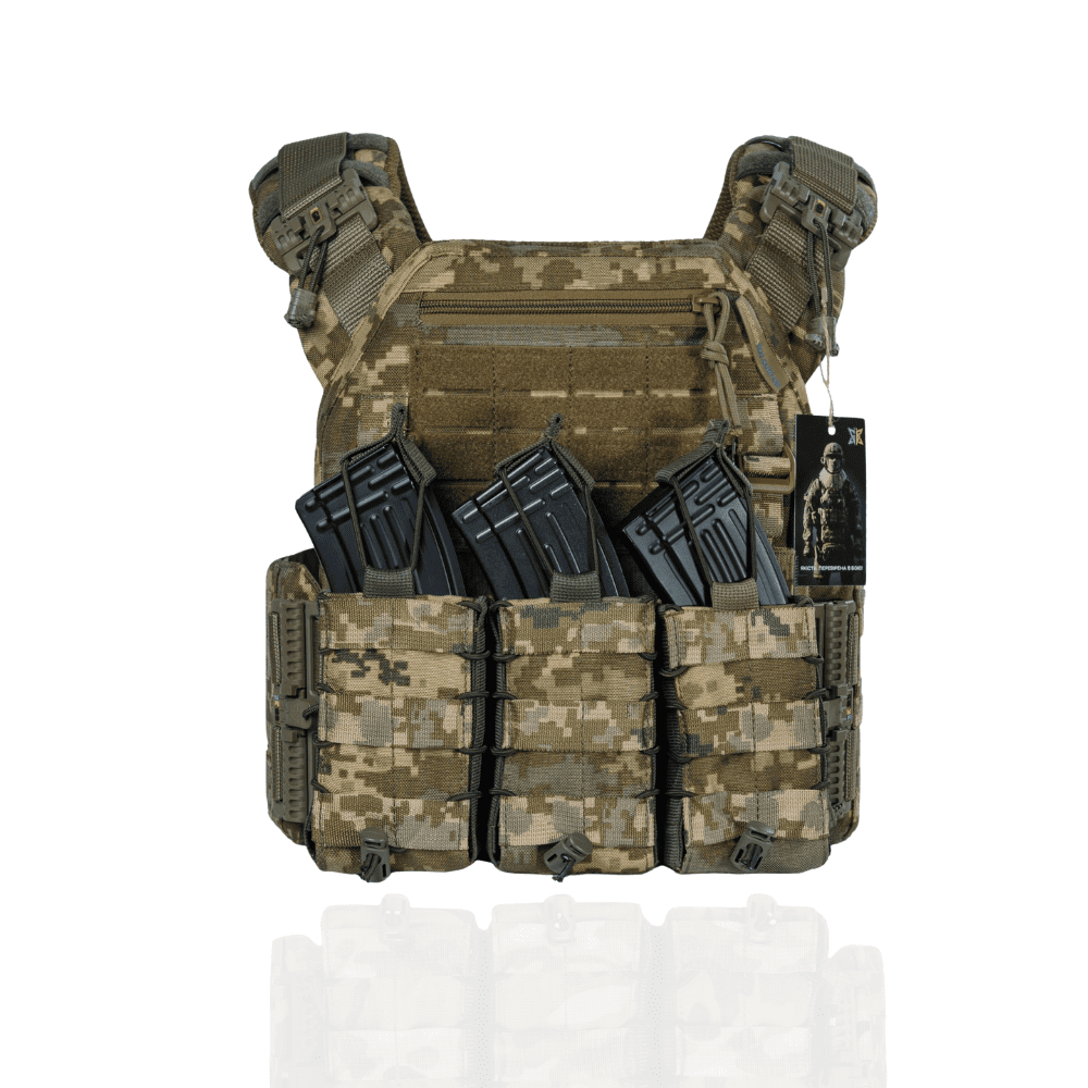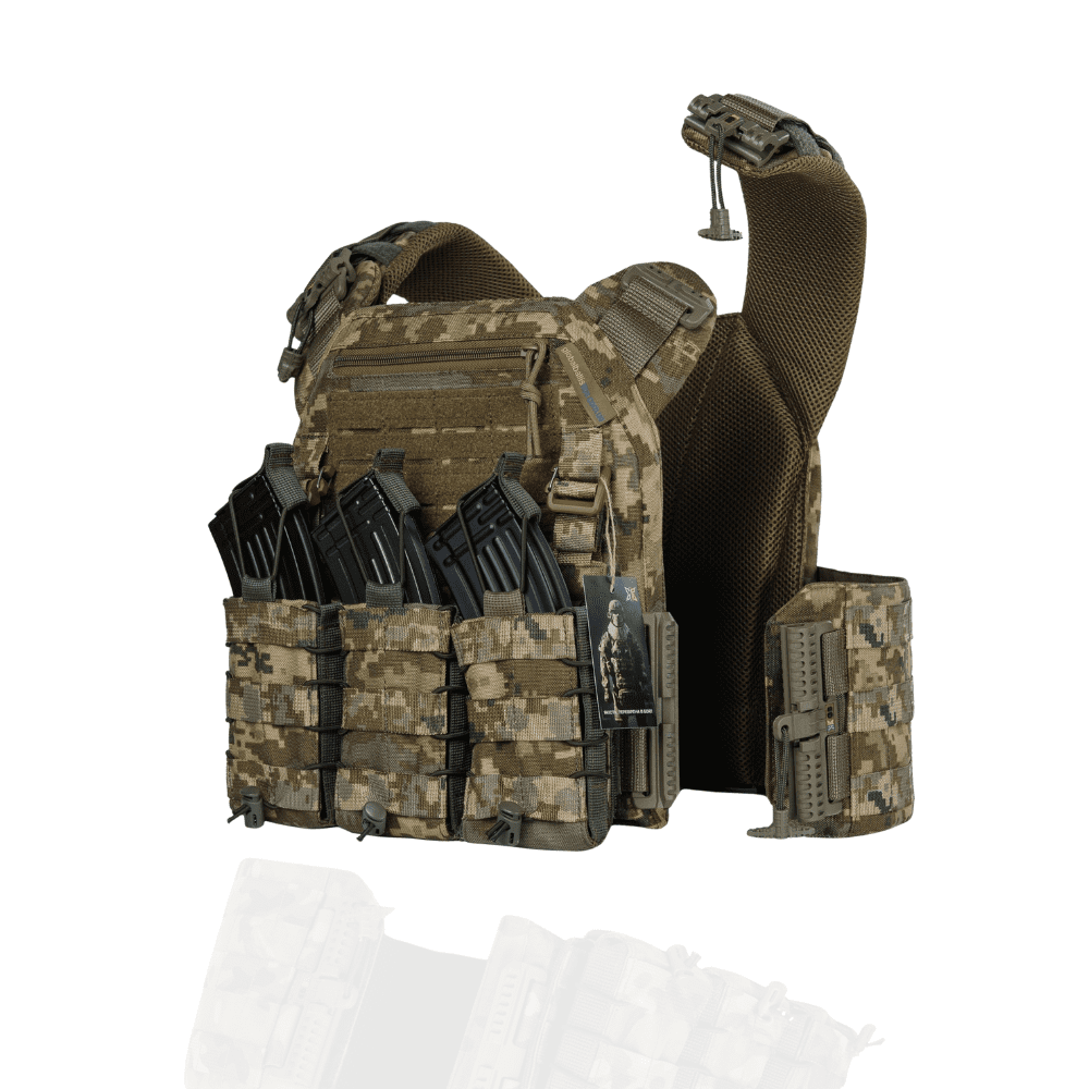 Бронежилет 6 клас. Вага 6.2 кг. Дві керамічні бронеплити та плитоноска Warmor Gen.3 Колір Піксель