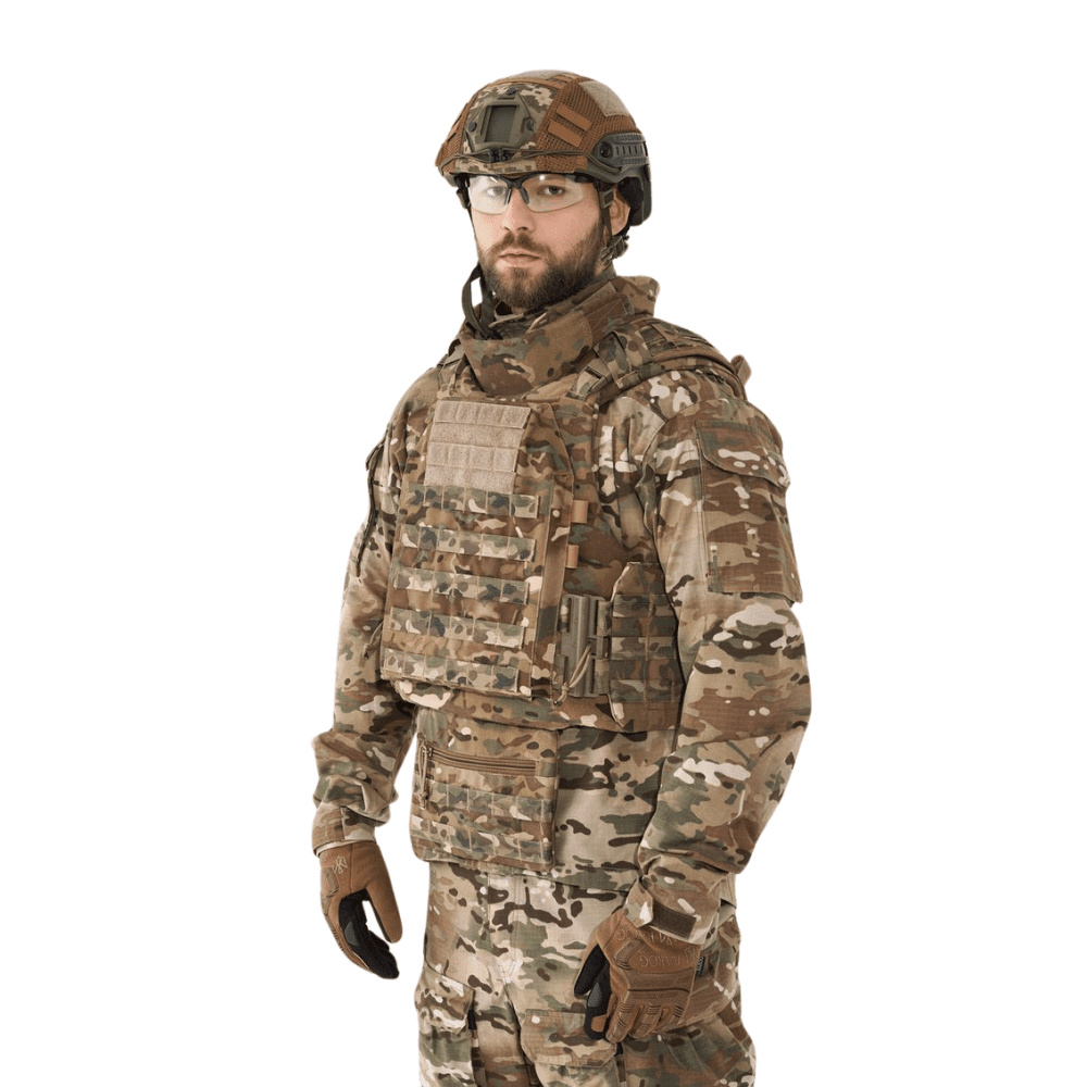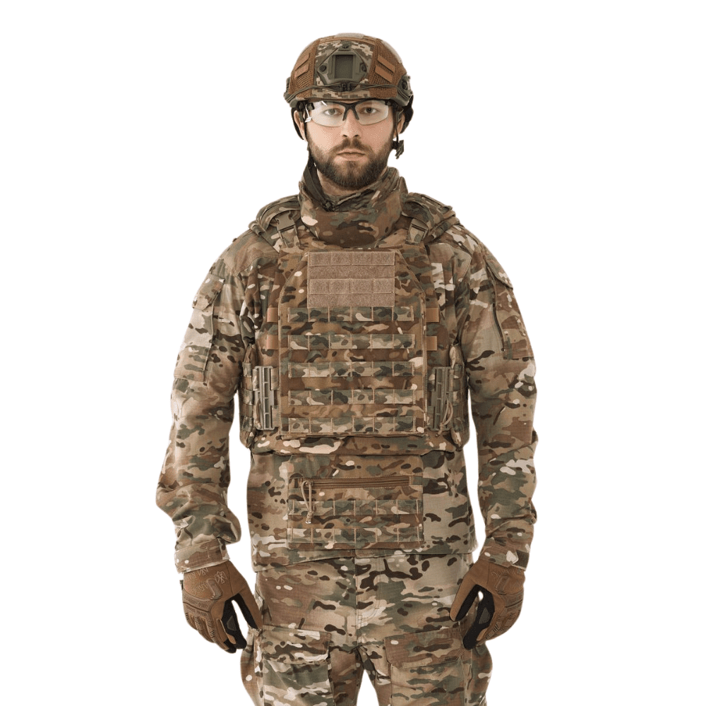 Бронежилет Plastoon X Kit 3 з балістичним захистом 2-го класу. Захист шиї та живота. Вага 5.4 кг. Колір Multicam