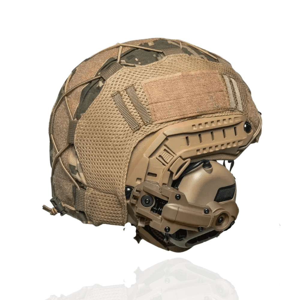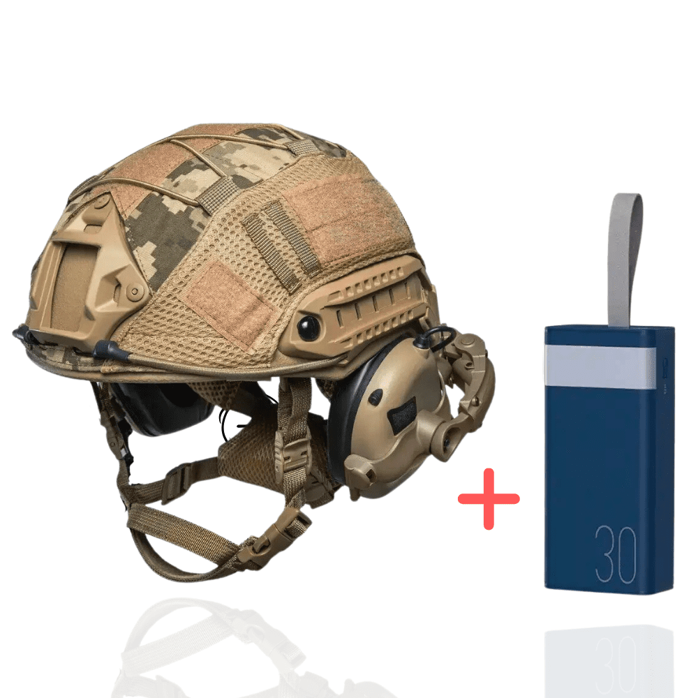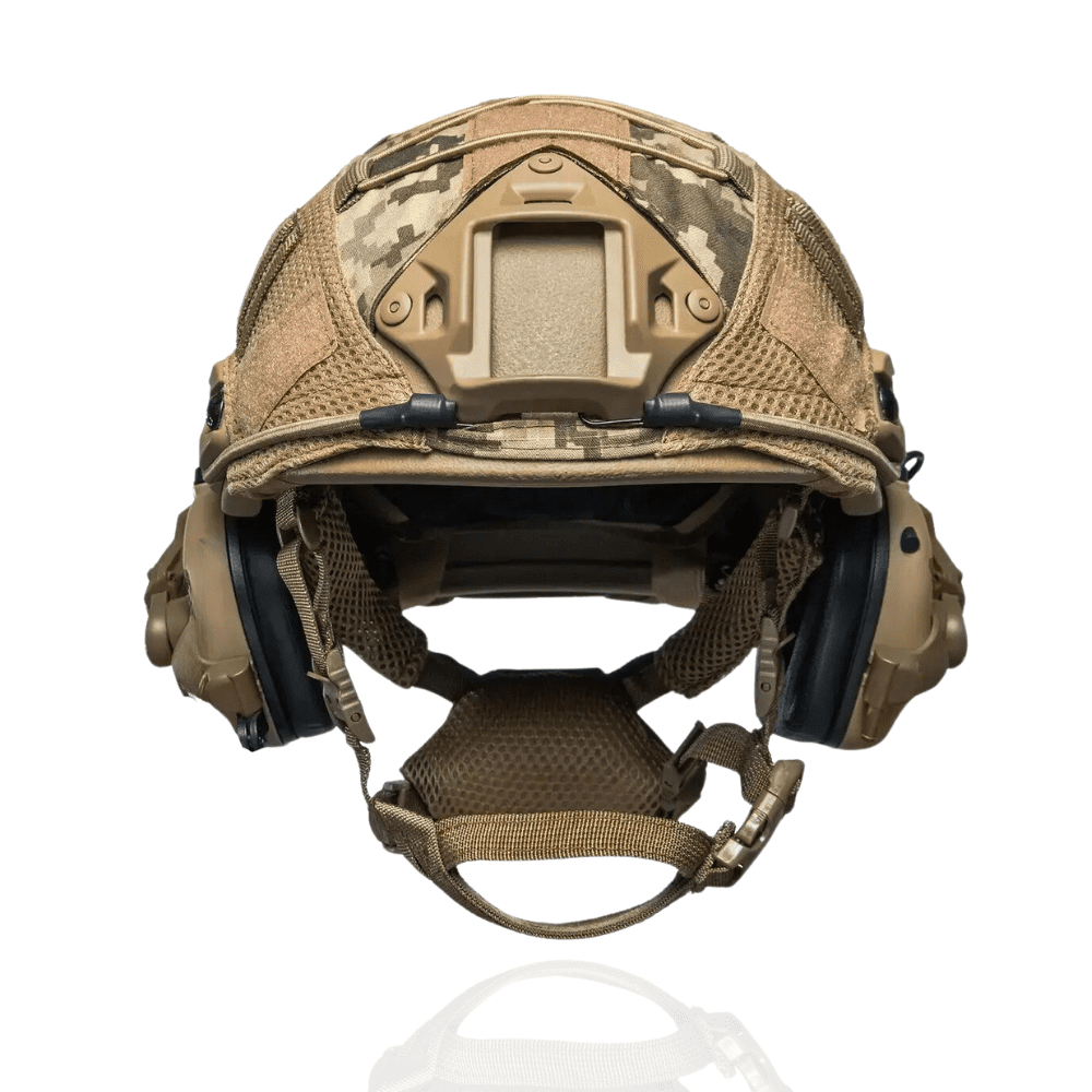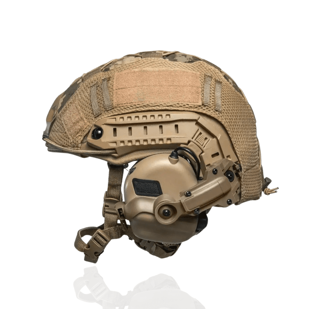 Комплект шолом Fast NIJ IIIA з активними навушниками Earmor M31 з кріпленням Чебурашки. Койот