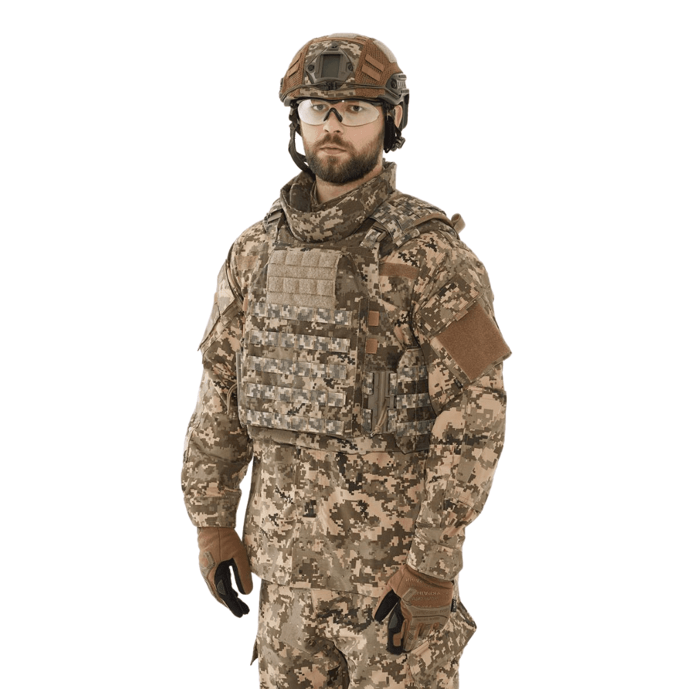 Бронежилет Plastoon X Kit 4 з балістичним захистом 2-го класу. Захист шиї, живота та паху. Вага 5.6 кг. Колір Pixel