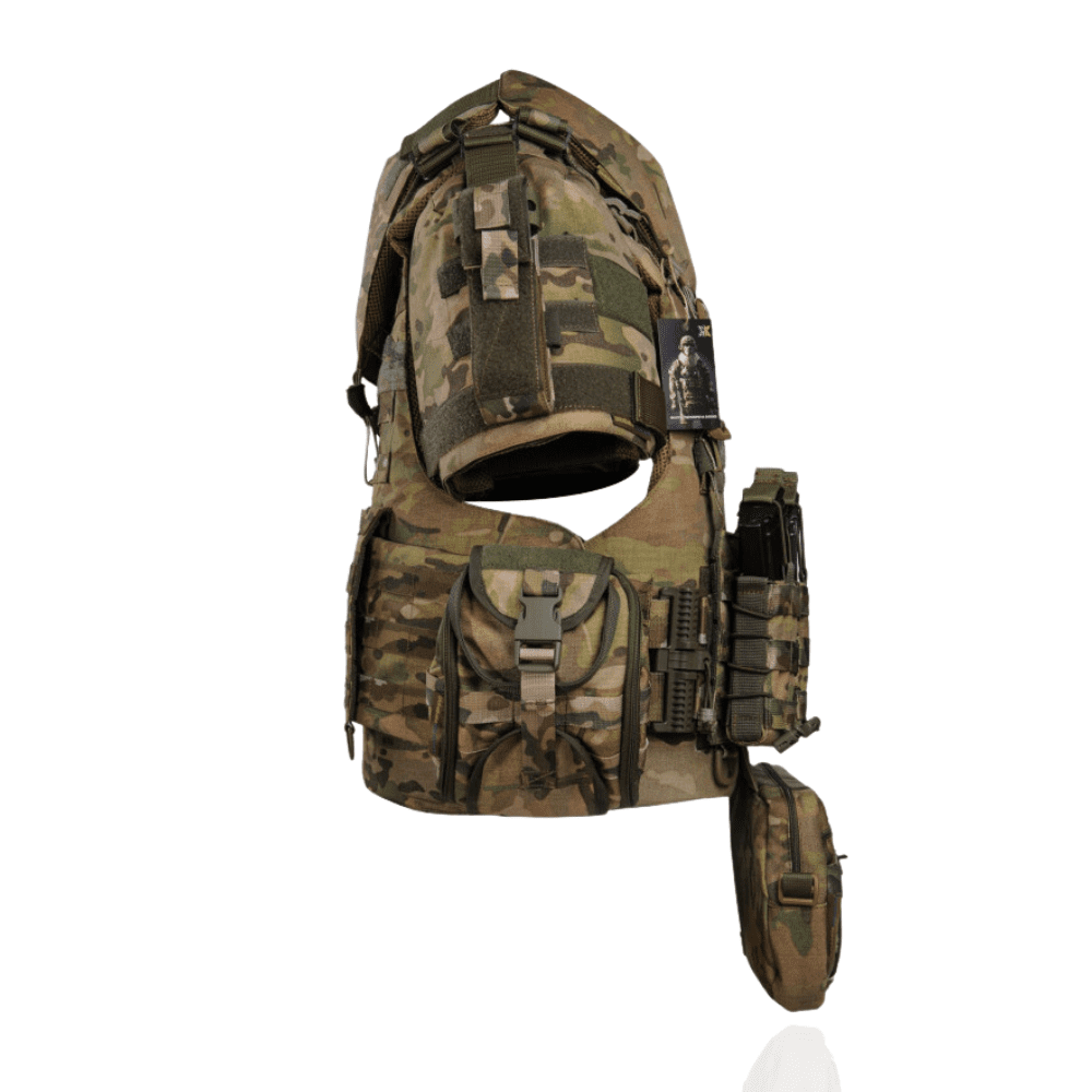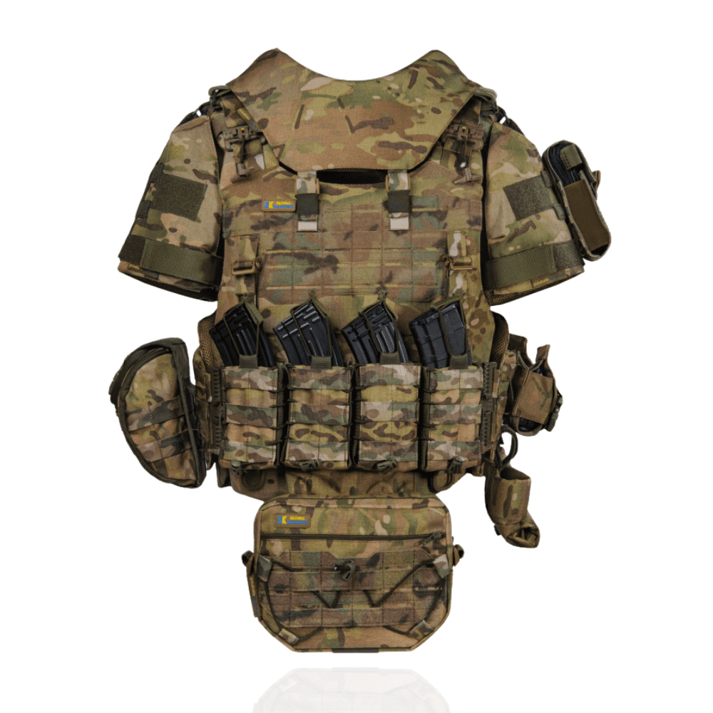 Армійський бронежилет зі збільшеною площею захисту (площа захисту від уламків покриває майже весь тулуб, закриває з усіх сторін), він створений на основі легендарного бойового бронежилету армії США – IOTV 3, саме в ньому виконують свої бойові завдання сухопутні війська США.  Основа бронежилету та його особливість це повнорозмірні балістичні пакети 1-го класу захисту, саме вони забезпечать захист від уражень уламками, рикошетів та пострілів 9 х 18 мм. Makarov та Luger при вазі всього вага +-6 кг.