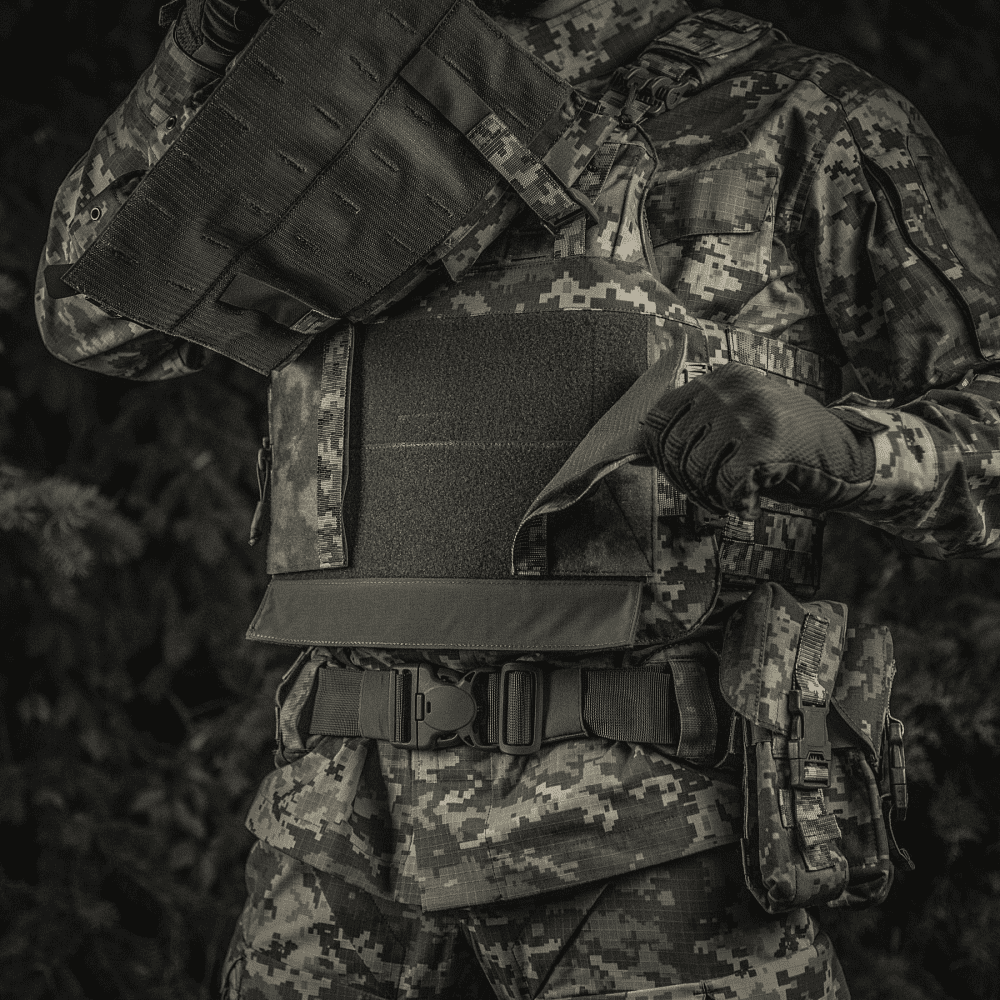 Чохол бронежилета виготовлений з високоякісного матеріалу Cordura 500D – надміцної тканини, стійкої до стирання і високих навантажень. Розширений камербанд з Molle інтерфейсом на 4 стропи при необхідності дозволяє розмістити додаткове спорядження, наприклад, горизонтальні аптечки або утилітарні підсумки.