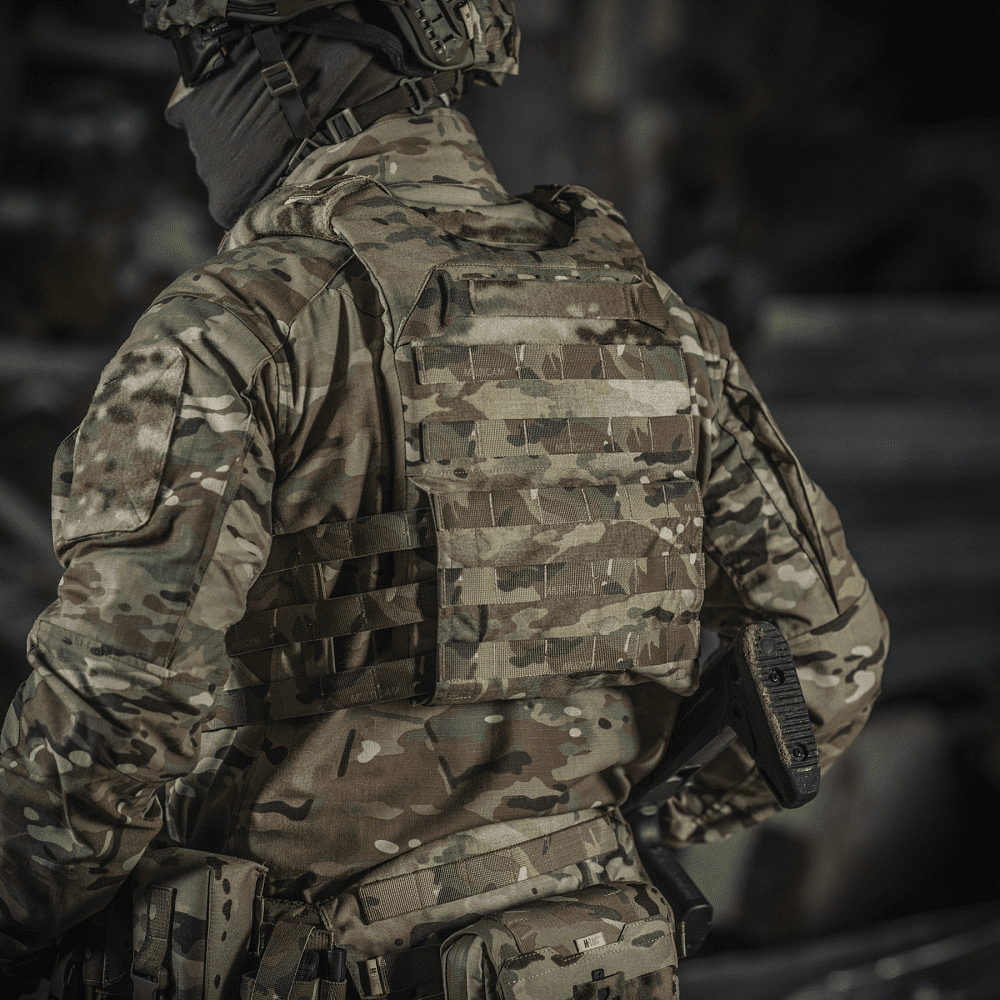 M-Tac плитоноска Cuirass Fast QRS – це відмінний засіб індивідуального бронезахисту в лінійці PLATE CARRIER. Сумісна зі стандартними бронеплитами ESAPI (USA) Medium (31.8 х 24.1 см) зі скошеними верхніми кутами.