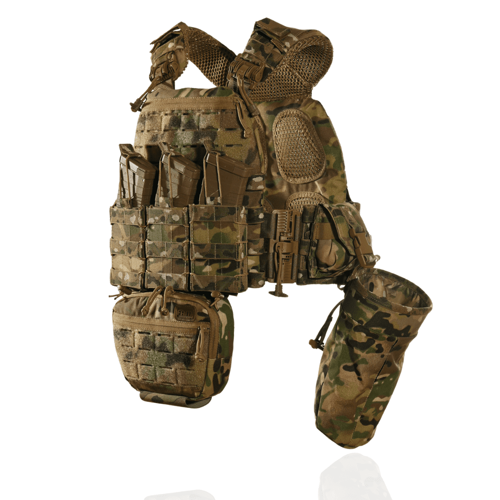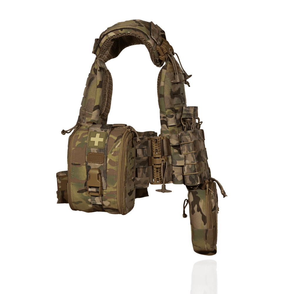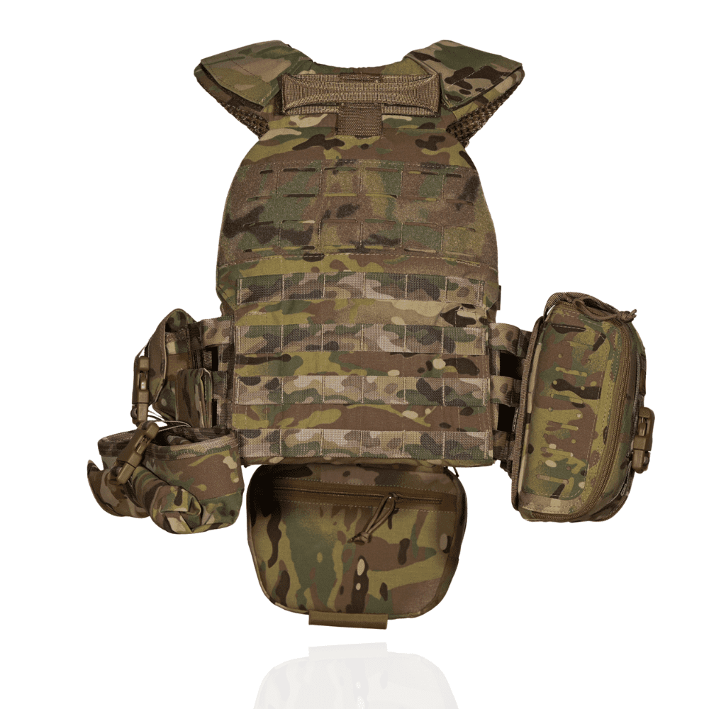 Плитоноска посилена із евакуаційною стропою. Бронежилет із системою швидкого скидання + 7 підсумків. Мультикам