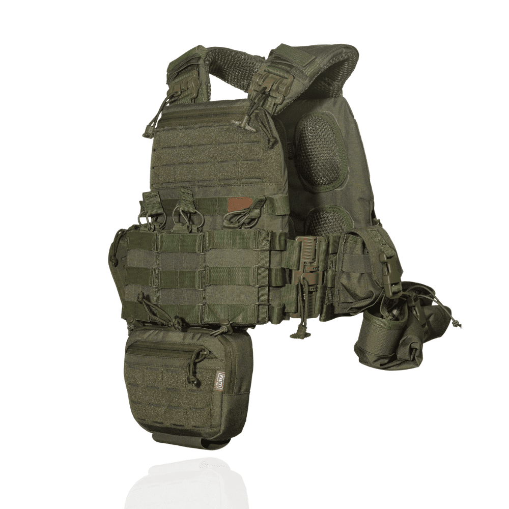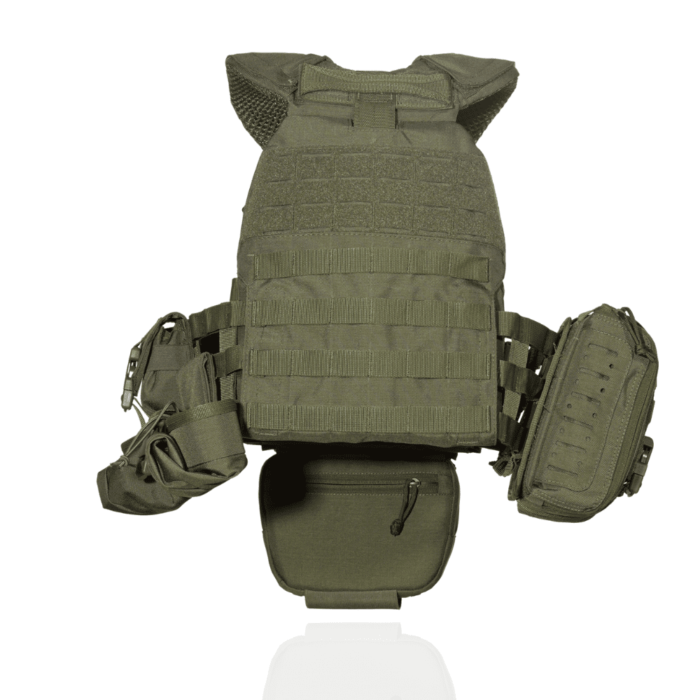Плитоноска посилена із евакуаційною стропою. Бронежилет із системою швидкого скидання + 7 підсумків. Олива